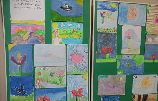 Uczniowie klas II a II b po przeczytaniu baśni „ Calineczka” wzięli udział w konkursie plastycznym „ Ilustracja do baśni Calineczka” .