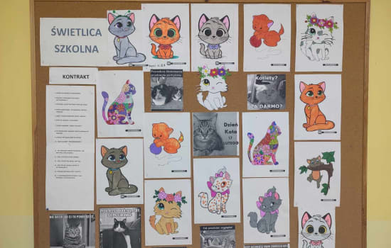 Luty i marzec to ostatnie miesiące zimy i ponurej aury. Dlatego tez staraliśmy się poprawić sobie nastrój pracami plastycznymi w kolorze różu i czerwieni z okazji Walentynek. Z kolei 17 lutego obchodziliśmy Dzień Kota - dzień naszych puchatych i milusińskich zwierzaków.