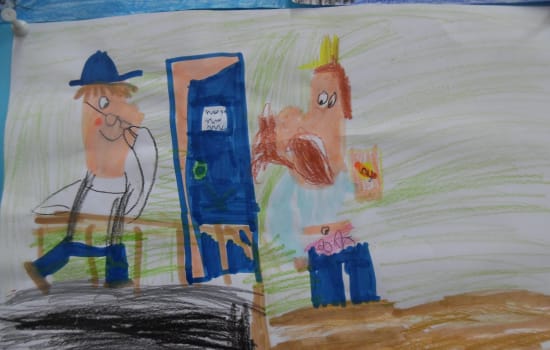 Uczniowie klasy II a po przeczytaniu książki „Detektyw Pozytywka ” wzięli udział w konkursie plastycznym „Ilustracja do książki Detektyw Pozytywka ”.
