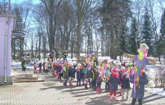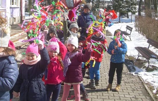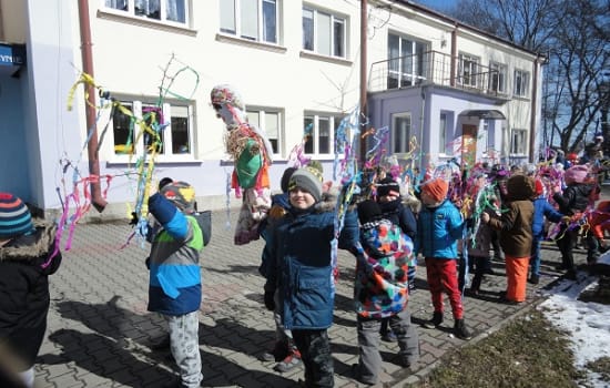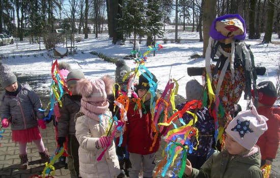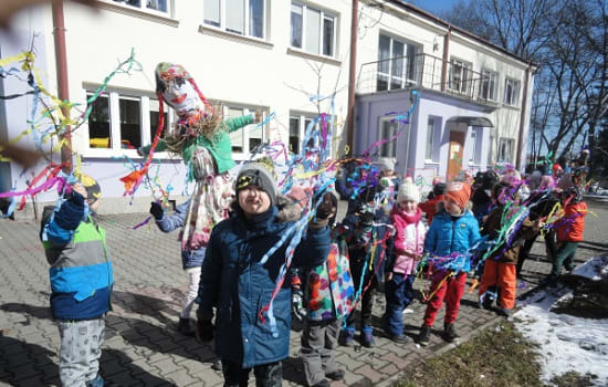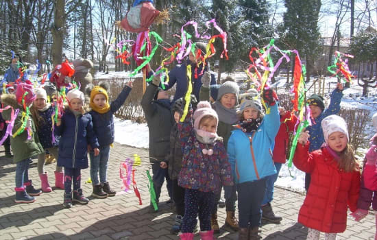 Dnia 22 marca dzieci z naszego przedszkola pożegnały Zimę i powitały Panią Wiosnę. Przygotowania rozpoczęły się już kilka dni wcześniej. Dzieci w grupach wykonały kukły Pani Zimy- Marzanny oraz Gaiki- Maiki. Przedszkolaki maszerowały po alejkach parku niosąc Marzanny- symbole Zimy. Wracając do przedszkola wszyscy trzymali w ręku kolorowe Gaiki- Maiki- symbolizujące nadejście Pani Wiosny, śpiewając wspólnie wiosenne piosenki.