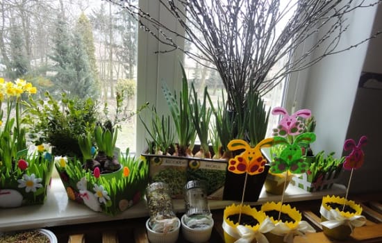 Nie mogąc doczekać się kolorowej i ciepłej wiosny dzieci w naszym przedszkolu, w każdej grupie założyły „zielony ogródek”. Na początku oglądały różne rodzaje cebulek, nasiona fasoli, rzeżuchy, nasiona zbóż, porównywały ich wielkość i kształt. Dowiedziały się jakie warunki są niezbędne roślinom do ich rozwoju- ziemia, woda i słońce. Następnie z pomocą pań posadziły kwiaty cebulowe oraz warzywa – cebulę na szczypiorek, a także zasiały rzeżuchę i nasiona zbóż na kiełki. Dzięki bezpośredniej obserwacji przedszkolaki miały możliwość, poznania cyklu rozwoju roślin, uczenia się systematycznej pielęgnacji posadzonych roślin. Zielony kącik przyrody był dla dzieci doskonałym miejscem do prowadzenia obserwacji.