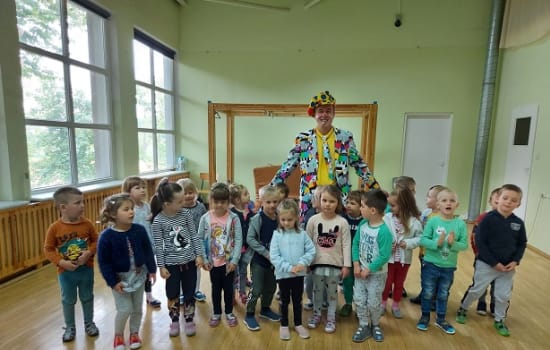 27 maja br. do naszego przedszkola zawitał animator zabaw - Klaun Fred. Przedszkolaki z radością przywitały niezwykłego gościa. Fred opowiedział dzieciom, czym się zajmuje oraz jakich atrybutów potrzebuje w swojej pracy. Przedszkolaki obejrzały pokazy zręcznościowe i przeróżne sztuczki w jego wykonaniu. Klaun dostarczył wszystkim moc atrakcji. Dzieciom szalenie podobała się jazda na rowerku, zjadanie chusteczek oraz gra na gitarze, która zakończyła wybuchem sztucznych ogni. Wyjątkowe spotkanie z Klaunem Fredem dało wiele radości naszym przedszkolakom.