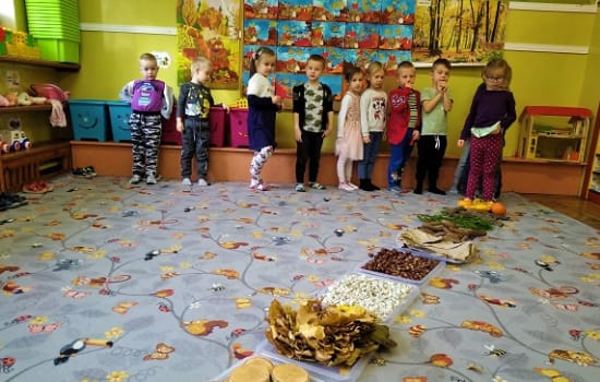20 października dzieci z grupy „Słoneczka” zrealizowały kolejne zadanie z Ogólnopolskiego projektu ekologicznego GRAMY W ZIELONE. Zorganizowały w swojej sali ścieżkę sensoryczną, która powstała ze zgromadzonych materiałów przyrodniczych. Spacer w skarpetkach, po różnych fakturach, sprawił dzieciom dużą radość i rozbudził w nich ciekawość doznań. Dzieci z uśmiechem stąpały po szyszkach, kamykach, korze, kasztanach, drewnianych krążkach czy ozdobnych dyniach. Poprzez dobrą zabawę ćwiczyły motorykę dużą, koordynację i równowagę. Dzieci stymulując receptory dotykowe na swoich stopach, dowiadywały się, jakie doznania są dla nich przyjemne, a które powodują u nich dyskomfort. Ścieżka sensoryczna sprawiła naszym przedszkolakom dużo radości.