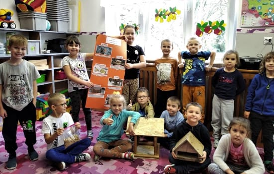 28 października dzieci z grupy „STOKROTKI” zrealizowały kolejne zadanie dotyczące Ogólnopolskiego projektu ekologicznego GRAMY W ZIELONE. Z uwagą i zaangażowaniem słuchały informacji o dokarmianiu zwierząt. Dowiedziały się, co wolno a czego nie należy dawać do zjedzenia ptakom i jak można pomóc przetrwać zimę zwierzętom leśnym. Przedszkolaki wspólnie przygotowały KODEKS DOKARMIANIA ZWIERZĄT. Następnie wybrały się na spacer po okolicy przedszkola, żeby znaleźć odpowiednie miejsce do zawieszenia karmników przygotowanych w domu wspólnie z rodzicami. Dziękujemy za zaangażowanie Rodziców. Dzieci zapewniały, że będą dokarmiały ptaki podczas zimowych spacerów.