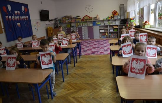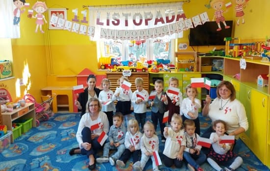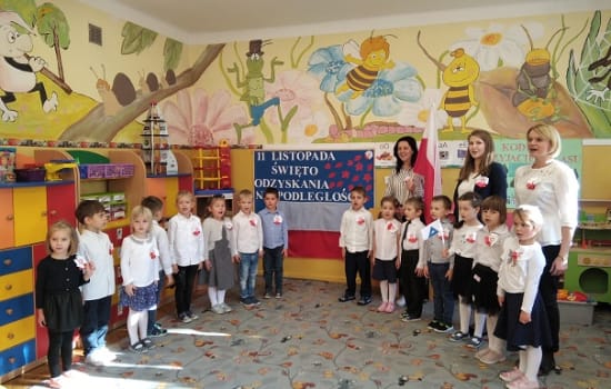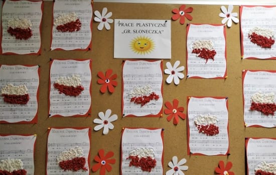 W dniu 10 listopada w naszym przedszkolu odbyła się uroczystość z okazji Święta Niepodległości. Z uwagi na panującą pandemię i obostrzenia uroczystość ta miała inny charakter, gdyż każda z grup obchodziła ją osobno. Dzieci wykonały kotyliony, flagi, godło Polski oraz inne prace plastyczne upamiętniające ten dzień. Wspólnym akcentem było włączenie się do akcji ,,Szkoła do hymnu” i zaśpiewanie przez przedszkolaków o godzinie 11.11 w każdej grupie hymnu Polski. Przedszkolaki obchodząc święto 11 listopada, zrealizowały również kolejne zadanie z projektu „Piękna Nasza Polska cała”