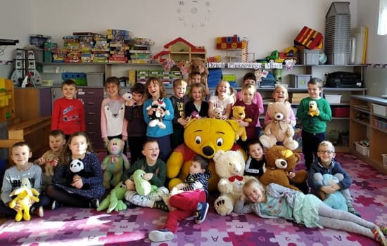 Pluszowy miś to najlepszy przyjaciel każdego dziecka, ukochana maskotka na dobre i złe chwile. Można go przytulić, a nawet powiedzieć mu o czymś bardzo ważnym. O święcie tej postaci nie zapomniały dzieci z naszego przedszkola. Każdy przedszkolak w dniu 25.11. przyniósł swojego ukochanego misia. Spotkały się misie małe, średnie i duże, brązowe, szare, czerwone, niebieskie, żółte i różowe, a każdy był kochany, uroczy i wyjątkowy. Dzieci poznały historię Święta Pluszowego Misia, wspólnie recytowały wiersze, oglądały bajki, bawiły się przy piosenkach o misiach oraz brały udział w zabawach ruchowych, a także wykonywały prace plastyczne, których główną postacią był miś. Dzień Pluszowego Misia w naszym przedszkolu był pełen uśmiechu i świetnej zabawy. Dzieci były szczęśliwe, że mogły spędzić tyle czasu ze swoimi ukochanymi misiami oraz pokazać je koleżankom i kolegom. Dzień ten dostarczył przedszkolakom dużo wrażeń i atrakcji.