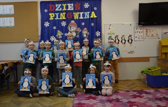 17 stycznia w grupach: SŁONECZKA, PSZCZÓŁKI i STOKROTKI miał miejsce DZIEŃ PINGWINA. Przedszkolaki przeniosły się do krainy lodu, pełnej małych pingwinków. ,,Małe pingwinki” wspólnie bawiły się, tańczyły, śpiewały, wykonywały prace plastyczne. Zgromadzone na ten dzień albumy, atlasy, książeczki wzbogaciły wiedzę dzieci na temat pingwinów, a filmy edukacyjne o pingwinach opowiadały o różnych gatunkach oraz ciekawostkach o nich. Dzieci obejrzały również film ,,O przygodach pingwina Kleofaska”. Dzień ten dostarczył przedszkolakom dużo wrażeń i atrakcji.