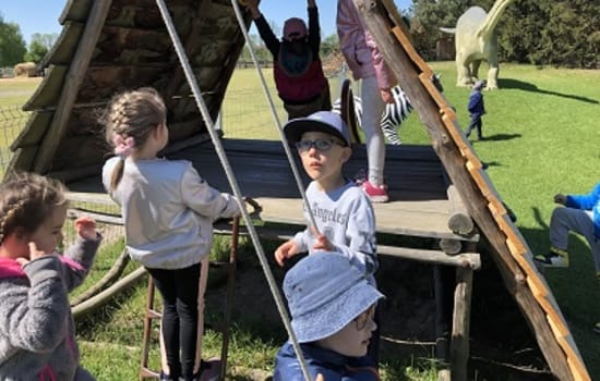 18 maja 2022r. grupa STOKROTKI wybrała się na wycieczkę do Gospodarstwa Agroturystycznego „Ranczo Arka” w Sernikach. Pobyt w Mini Zoo w Ranczu Arka zaczęliśmy od oglądania zwierząt w Mini Zoo. Już z drogi widzieliśmy strusie afrykańskie, Emu, Nandu, a następnie przechodziliśmy do zagród, w których zobaczyliśmy konie, osła, górskie bydło szkockie, lamy, alpaki, bydło węgierskie, świnki , kozy, jeżozwierze, surykatki i wiele innych zwierząt. W ranczu czekały też inne atrakcje - przejażdżka wesołą ciuchcią- czyli kolejką wąskotorową, oraz wesołą stonogą - przejażdżka wozem taborowym. Dzieci chętnie bawiły się na placu zabaw, gdzie korzystały z huśtawek, do woli mogły skakać na trampolinie. Po tych przyjemnościach wszyscy chętnie zajadali się różnymi przysmakami. Zabawa była wspaniała, a uśmiechnięte miny potwierdzają niesamowite wrażenia. Z tej wyprawy wróciliśmy zmęczeni, ale szczęśliwi.