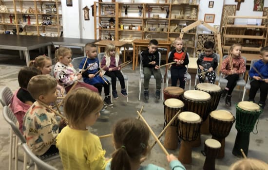 14 marca 2023r dzieci z grup: MOTYLKI. SŁONECZKA ORAZ PSZCZÓŁKI pojechały do PRACOWNI TALENTÓW LUBARTOWSKA 77. Przedszkolaki wzięły udział w warsztatach kulinarnych robienia pizzy. Dzieci miały okazję dowiedzieć się skąd wywodzi się pizza, jak ją prawidłowo przygotowywać. Po pokazie przystąpiły do samodzielnego przygotowania pizzy ze swoimi ulubionymi składnikami – rozciągały ciasto, smarowały sosem pomidorowym, układały ulubione produkty. Z przygotowaniem pizzy przedszkolaki poradziły sobie znakomicie. Zajęcia kulinarne to dla dzieci fascynująca podróż do świata smaków, zapachów i kolorów. Oczywiście nie obyło się bez degustacji samodzielnie przygotowanej pizzy. Na przedszkolaków czekały również inne atrakcje. Był to warsztat muzyczny, podczas którego dzieci tworzyły muzykę grając na różnych instrumentach. Warsztat integracyjno- rozwojowy dostarczył dużo radości podczas wspólnych integracyjnych gier grupowych, a różnego rodzaju gry stworzyły okazję do zabawy i nauki. Warsztaty dostarczyły przedszkolakom dużo radości i wrażeń.