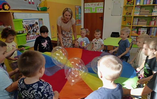20 września - to dzień ważny dla wszystkich przedszkolaków w całej Polsce, został bowiem ogłoszony Ogólnopolskim Dniem Przedszkolaka. Święto to zostało ustanowione, aby podkreślić wagę wychowania przedszkolnego w rozwoju i edukacji dzieci. Nasze przedszkolaki również obchodziły w tym dniu to ważne dla nich święto. Były zabawy, tańce, konkursy. Dzieci malowały na folii, a także bawiły się z wykorzystaniem chusty animacyjnej, tunelu, worków, piłeczek, balonów. Zajadały się pyszną watą cukrową. Przedszkolaki otrzymały również na pamiątkę tego święta specjalne ordery.
