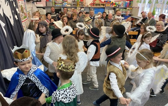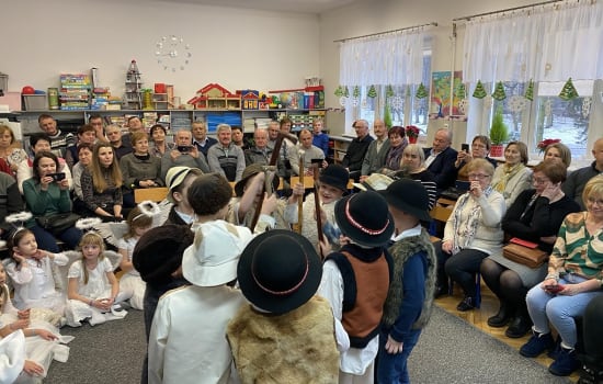 Dzień Babci i Dziadka to szczególny czas, kiedy możemy gościć w naszym przedszkolu wyjątkowych gości. Grupy „Smerfy” i „Tygryski” również zaprosiły do przedszkola swoich najbliższych. 18 i 19 stycznia najstarsze grupy z radością powitały swoje babcie i swoich dziadków w przedszkolu. Zaprezentowały przedstawienia zatrzymując jeszcze przez chwilę, ciepłą, świąteczną atmosferę. Małych artystów wspierała swoją obecnością Dyrekcja naszej placówki. Po występie dzieci wręczyły przybyłym gościom upominki i zaprosiły na słodki poczęstunek, zorganizowany przez rodziców. Nie obyło się bez wzruszeń, ciepłych słów i serdecznych uścisków.