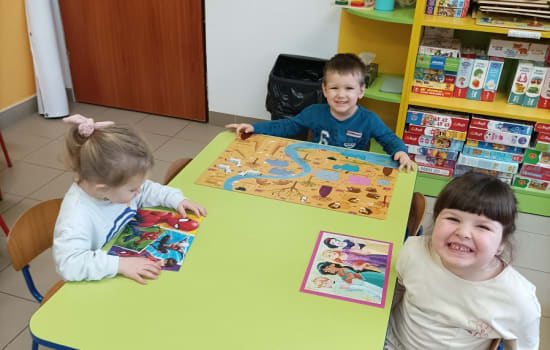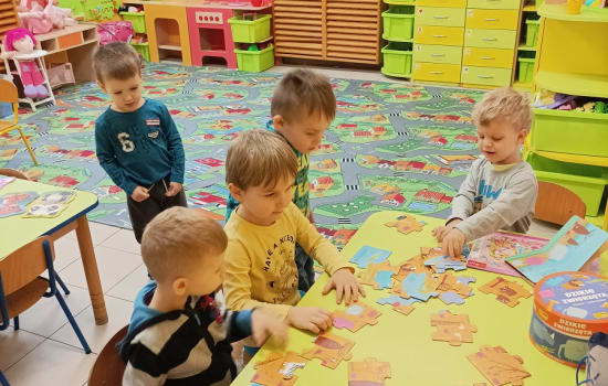26 stycznia dzieci z grupy "Motylki" realizując kolejne zadanie w ramach projektu "Kreatywne Dni Nietypowe" brały udział w różnych zabawach z puzzlami, obchodząc w przedszkolu "Międzynarodowy Dzień Puzzli". Świętowanie tego dnia ma za zadanie zwrócić uwagę na pozytywny wpływ puzzli na nasz mózg - logiczne myślenie i koncentrację.