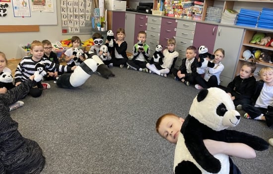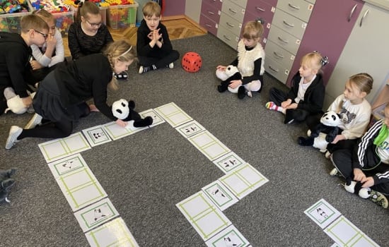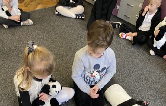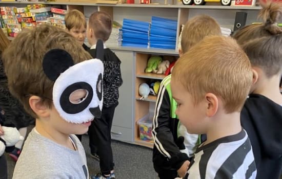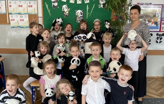 15 marca był wyjątkowo radosnym dniem w grupie „Smerfy”. Dzieci zrealizowały kolejne zadanie z Ogólnopolskiego Projektu Edukacyjnego „Kreatywne Dni Nietypowe”. Obchodziły Międzynarodowy Dzień Pandy. Przedszkolaki ubrane na czarno-biało, przyniosły zabawki-pandy, poznały wiele ciekawostek o zwierzakach, oglądały wesołą prezentację o życiu pand, wykonały pracę plastyczno-techniczną i uczestniczyły w wielu zabawach tematycznych. Korzystając z tablicy multimedialnej układały puzzle online. Grały też w wielkoformatową grę planszową z pandą, tańczyły, gimnastykowały się i rozwijały kompetencje matematyczne rozwiązując sudoku z pandą w parach. Było nam szczególnie miło, że do zabawy włączyli się nasi goście, którzy przybyli na Dzień Otwarty Przedszkola.