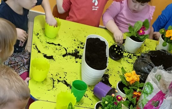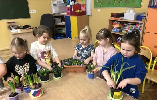 Nie mogąc doczekać się kolorowej i ciepłej wiosny dzieci w naszym przedszkolu, w każdej grupie założyły „wiosenny kącik”. Na początku oglądały różne rodzaje cebulek, nasiona fasoli, rzeżuchy, nasiona zbóż, porównywały ich wielkość i kształt. Dowiedziały się jakie warunki są niezbędne roślinom do ich rozwoju- ziemia, woda i słońce. Następnie z pomocą pań posadziły kwiaty oraz warzywa – cebulę na szczypiorek, a także zasiały rzeżuchę i nasiona zbóż. Dzięki bezpośredniej obserwacji przedszkolaki mają możliwość, poznania cyklu rozwoju roślin, uczenia się systematycznej pielęgnacji posadzonych roślin. Wiosenne kąciki przyrody są dla dzieci doskonałym miejscem do prowadzenia obserwacji.