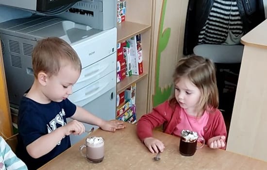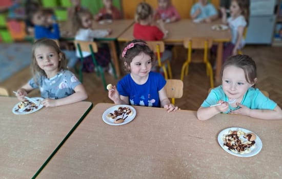 12 kwietnia dzieci z grupy Słoneczka obchodziły DZIEŃ CZEKOLADY. Przedszkolaki zapoznały się ze składnikami, sposobem produkcji oraz rodzajami czekolad. Dzieci degustowały różne rodzaje czekolady oraz wykonały deser, który polały roztopioną czekoladą. Próbowały również czekolady do picia oraz uczyły się piosenki i słuchały wiersza o czekoladzie.