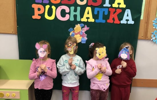 14 stycznia dzieci z grupy MĄDRE SOWY obchodziły Dzień Kubusia Puchatka. Było to kolejne zadanie realizowane w ramach projektu ,,Kreatywne Dni Nietypowe”. Przedszkolaki poznały historię tego święta, słuchały bajek o Kubusiu Puchatku, oglądały książki, układały puzzle oraz wykonały pracę plastyczną związaną z Kubusiem. Niezwykłym powodzeniem cieszyła się fotobudka. Dzień ten dostarczył dzieciom dużo wrażeń.