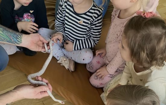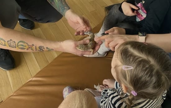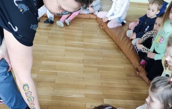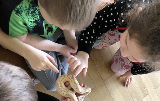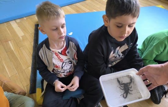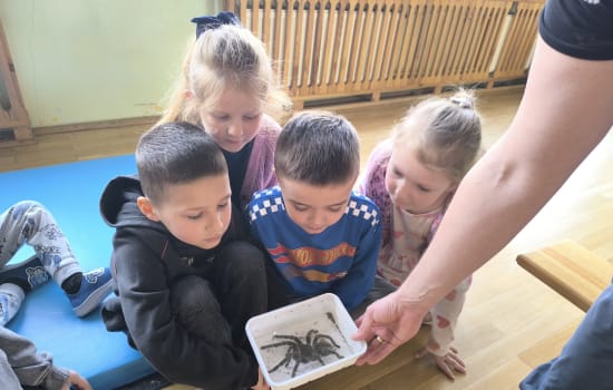 11 marca dzieci z naszego przedszkola wzięły udział w niezwykłej lekcji przyrody prowadzonej przez p. dr inż. Damiana Zielińskiego, który przybył do nas z niezwykłymi okazami. Były to patyczaki, liśćce, jaszczurki, węże, pająki, skorpiony. Przedszkolaki z wielkim zainteresowaniem obserwowały niecodzienne okazy. Nie było mowy o strachu! To była ogromna ciekawość. Dzieci z przejęciem słuchały opowiadań o życiu gadów, płazów i innych stworzeń, ich upodobań, zwyczajach, przysmakach. Pod czujnym okiem prowadzącego miały możliwość dotknięcia gekona, węża, przyjrzeniu się z bliska wielu okazom.