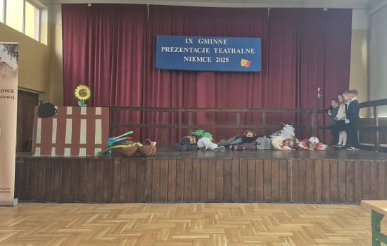12 marca 2025 roku w Szkole Podstawowej w Niemcach odbyły się IX Gminne Prezentacje Teatralne. Celem wydarzenia było umożliwienie dzieciom i młodzieży podejmowanie aktywnych działań twórczych, promocja talentów, prezentacja dorobku artystycznego szkolnych i przedszkolnych zespołów teatralnych, rozwijanie wrażliwości estetycznej i zainteresowania teatrem.