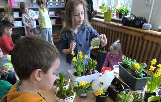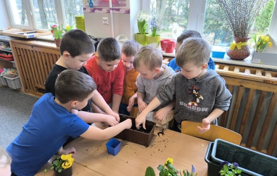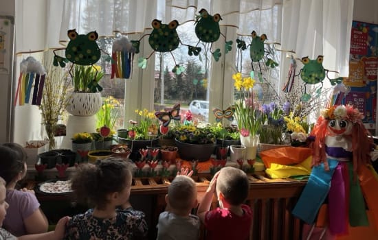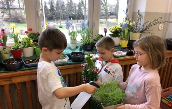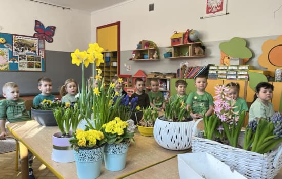 Nadeszła piękna, kolorowa wiosna. Dzieci w naszym przedszkolu, w każdej grupie założyły „wiosenne kąciki przyrody”. Na początku oglądały różne rodzaje cebulek, rzeżuchy, przyniesione kwiaty, porównywały ich wielkość i kształt. Dowiedziały się jakie warunki są niezbędne roślinom do ich rozwoju- ziemia, woda i słońce. Następnie posadziły kwiaty, cebulę na szczypiorek, a także zasiały rzeżuchę. Dzięki bezpośredniej obserwacji przedszkolaki mają możliwość, poznania cyklu rozwoju roślin, uczenia się systematycznej pielęgnacji. Wiosenne kąciki przyrody są dla dzieci doskonałym miejscem do prowadzenia obserwacji.