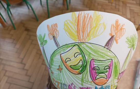 27 marca dzieci z grupy ,,Słoneczka" obchodziły w ramach projektu Kreatywne Dni Nietypowe Międzynarodowy Dzień Teatru. W tym dniu dzieci chętnie opowiadały za co lubią teatr, wcielały się w rolę aktorów, śpiewały piosenki o teatrze, obejrzały multimedialne przedstawienie teatralne dla dzieci, wykonały pamiątkowe opaski na głowę.