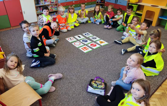 W ramach realizacji projektu ,,Postaw na wartości”, w miesiącu wrześniu dzieci z naszego przedszkola zrealizowały zadanie zawarte w kręgu V- ,,Bezpiecznym być - to znaczy żyć”. Dzieci poznały zasady ruchu drogowego, znaki drogowe oraz inne symbole, które znajdują się w przedszkolu oraz w innych miejscach publicznych. Nauczyły się prawidłowo przechodzić przez ulicę. Przedszkolaki poznały takie sytuacje życiowe, w których należy zadbać o własne bezpieczeństwo oraz sposoby jak to uczynić.