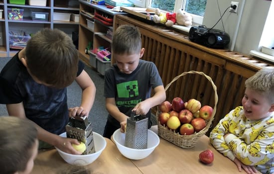 Dnia 29 września obchodziliśmy w naszym przedszkolu Dzień Jabłka. Było to jedno z zadań w ramach realizacji projektu ,,Kreatywne dni nietypowe”. Celem zajęć i wspólnej zabawy była integracja wszystkich dzieci oraz zachęcanie do spożywania jabłek z powodu walorów zdrowotnych i odżywczych. Dzieci wszechstronnie poszerzały wiedzę o jabłku. Poznawały różne gatunki jabłek, rozpoznawały kształt, zapach, kolor, smak. Zdobywały wiadomości na temat potraw i przetworów z jabłek. Tego dnia dzieci również śpiewały wspólnie piosenki o jabłuszku, oraz uczestniczyły w konkursach grupowych. Dużą atrakcją okazała się możliwość wykonania soku jabłkowego oraz wykazanie się możliwością utarcia jabłka. Przedszkolaki wykonały prace plastyczne związane z tą tematyką. Dzień ten dostarczył dzieciom dużo atrakcji i radości.
