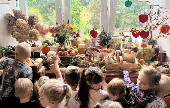 Okazuje się, że jesień króluje nie tylko w sadach czy ogrodach. W naszym przedszkolu można ją znaleźć w kącikach przyrody. Tegoroczna Jesień dała nam wiele darów. Wraz z rozpoczęciem tej barwnej pory roku, w każdej grupie trwały działania zmierzające do zaaranżowania ciekawych, bogatych w dary jesieni kącików przyrody. Nasze przedszkolaki przyniosły do przedszkola żołędzie, kasztany, jarzębinę, kolorowe liście, szyszki oraz jesienne kwiaty. W kącikach przyrody, we wszystkich grupach można spotkać także wspaniałe okazy warzyw i owoców. Oglądając skarby Pani jesieni , porównujemy kształty, wielkości, przeliczamy, segregujemy wszystkie okazy. Podkreślić należy, iż kąciki przyrody w przedszkolu dają dzieciom możliwość bezpośredniego kontaktu z przyrodą i są nieustannym źródłem doświadczania, odczuwania i przeżywania.