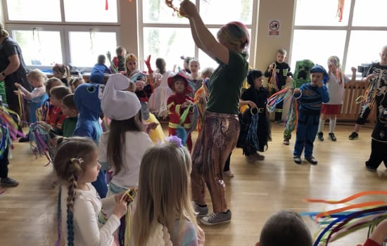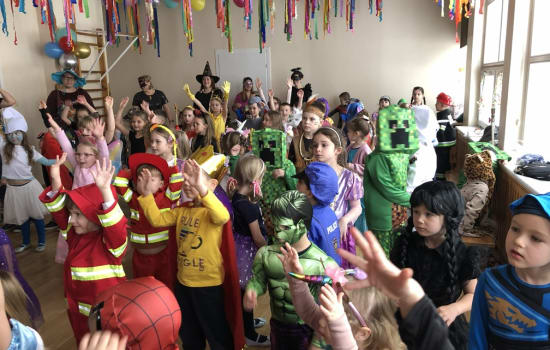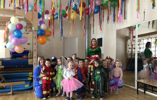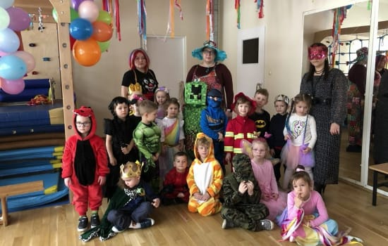 5 lutego w naszym przedszkolu odbył się BAL KARNAWAŁOWY. Wystrój sali balowej wprowadził dzieci w radosny nastrój oraz zachęcał do wesołej zabawy. Tego dnia już od rana w przedszkolu pojawiały się kolorowe postacie. Dzieci przebrane były za bohaterów znanych bajek. Można było spotkać wróżki, księżniczki, delikatne motylki, koty, pszczółki, biedronki, policjantów, Spider-Mana, Batmana. Nie sposób zliczyć i wymienić tych wszystkich postaci. Rozpoznać dzieci było bardzo trudno. Dzieci świetnie się bawiły przy muzyce z repertuaru dziecięcego oraz karnawałowych przebojów. Przedszkolaki zajadały się również pysznym poczęstunkiem przygotowanym przez rodziców. Dzień ten dostarczył dzieciom dużo wrażeń i atrakcji.