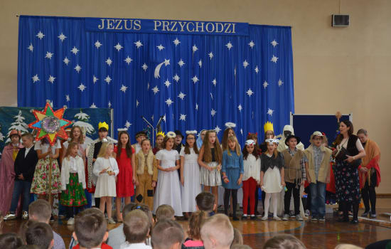 20.12.2019r. w naszej szkole , jak co roku, wystawialiśmy jasełka bożonarodzeniowe. Scenariusz do nich napisała Pani Teresa Kozieł, o oprawę muzyczną zadbała Pani Magda Stawecka, a Pani Beata Poździk przygotowała z uczniami zespołu artystycznego kl.I-III dwa tańce do pastorałek.