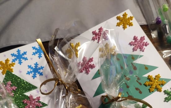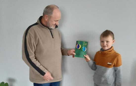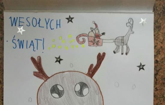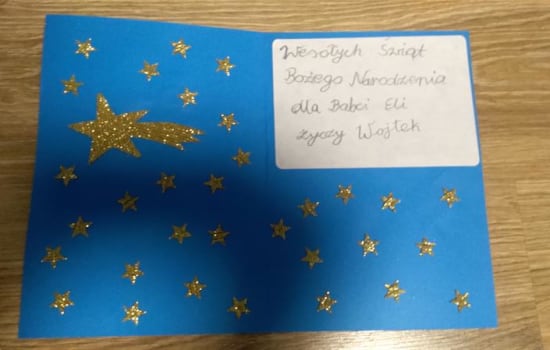 Klasa 1a i klasa 2a wykonała kartki świąteczne, które podaruje babciom, dziadkom, koleżance, koledze lub tez najbliższym sąsiadom. Zadanie sprawiło dzieciom dużo radości. Wykonywanie kartek czy też ozdób świątecznych było poprzedzone rozmową o znaczeniu obdarowania kogoś kartką świąteczną, a także o prawidłowym składaniu czy pisaniu życzeń.