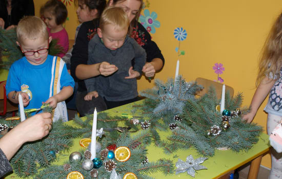 W dniu 16.12.2019 r. odbyły się w grupie „Motylki” warsztaty o tematyce związanej z Bożym Narodzeniem. Dzieci wspólnie z rodzicami wykonały ozdoby na choinkę - aniołki i tradycyjny stroik świąteczny. Zarówno dzieci jak i rodzice wykazali się dużą pomysłowością i kreatywnością podczas wykonywania stroików. Każdy z nich był inny, wyjątkowy i piękny. Warsztaty były wspaniałą okazją dla rodziców do spędzenia czasu z dziećmi, zrobienia czegoś wspólnie i wprowadziły wszystkich w świąteczny nastrój.