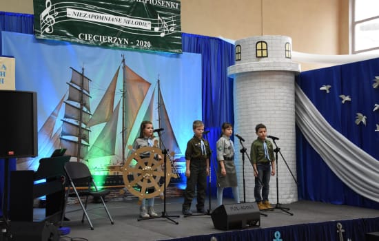 Nieśmiertelne szlagiery żeglarskich wypraw, takie jak choćby „Przechyły”, ,,Gdzie ta keja” czy „10 w skali Beauforta” rozbrzmiewały 20 lutego 2020 r. w Zespole Placówek Oświatowych w Ciecierzynie podczas XV Powiatowego Festiwalu Piosenki ,,Niezapomniane melodie”. Tematyka tegorocznej edycji konkursu nawiązywała do setnej rocznicy zaślubin Polski z morzem.