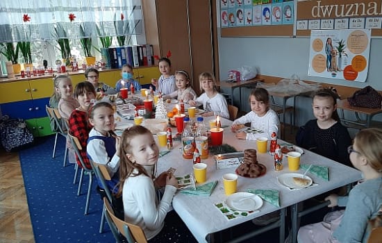 17 grudnia 2021r w klasie IIb było bardzo uroczyście. Uczniowie wspólnie przygotowali stół, przy którym później wszyscy zasiedli. Podczas tych czynności dzieci poznały tradycje bożonarodzeniowe. Dzieląc się opłatkiem składaliśmy sobie życzenia na Boże Narodzenie i Nowy Rok. Oczywiście były też drobne prezenty i dużo radości z tego powodu. Potem śpiewaliśmy kolędy i raczyliśmy się smakołykami przygotowanymi dla nas przez rodziców. Następnie obejrzeliśmy „Jasełka” przygotowane przez uczniów klasy III. Ten dzień był pełen radości.