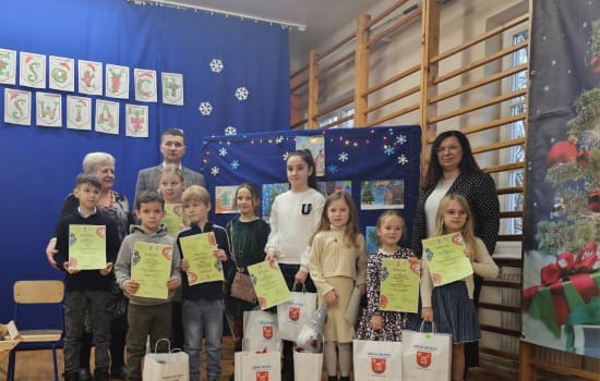 Uroczyste rozdanie nagród za kartkę świąteczną ,,Boże Narodzenie 2023r.’’ odbyło się dnia 18 grudnia w Szkole Podstawowej im. Kardynała Stefana Wyszyńskiego w Nasutowie.