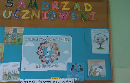 Uczniowie oraz nauczyciele z naszej szkoły w tym dniu byli ubrani na niebiesko, jako symbol solidarności ze wszystkimi dziećmi na świecie. Samorząd Uczniowski zorganizował dla klas 1-8 apel poświęcony Prawom Dziecka. Na tablicy SU zobaczyć mogliśmy również gazetkę poświęconą Prawom Dziecka. W listopadzie, w każdej klasie zostały prowadzone pogadanki oraz przedstawione filmy i prezentacje związane z tematem tego dnia.