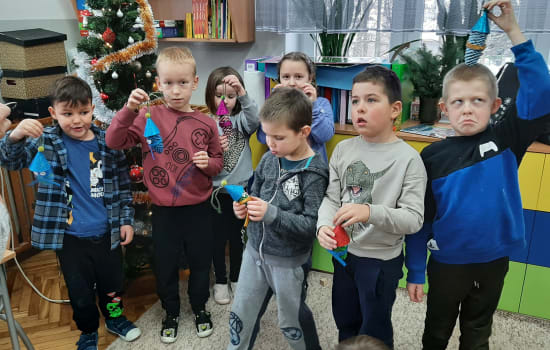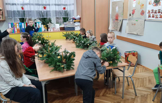 Na kolejnych warsztatach świątecznych, 18 grudnia, dzieci wykonywały stroiki z materiałów naturalnych. Zajęcia i materiały przygotowali rodzice. Część rodziców brała czynny udział. Dziękujemy za pomoc.