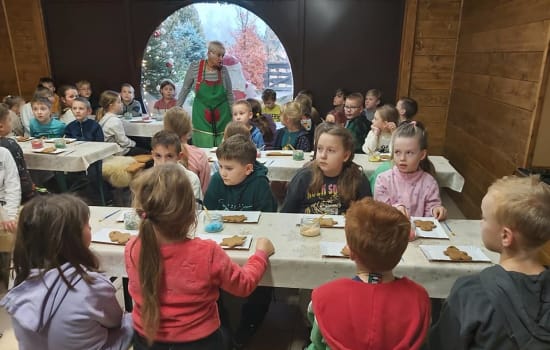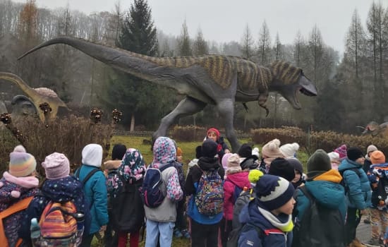 W dniu 4 grudnia uczniowie klas: pierwszych, drugich i klasy trzeciej wybrali się na wycieczkę do Bałtowa, gdzie mieści się Wioska Świętego Mikołaja. Głównym celem było przeżycie magicznej atmosfery świąt Bożego Narodzenia oraz spotkanie samego Mikołaja. Po dotarciu na miejsce, od razu wprowadziliśmy się w zimowy nastrój. Wszędzie było pełno śniegu, a cała wioska była przystrojona kolorowymi światełkami, choinkami i dekoracjami bożonarodzeniowymi. Najpierw przenieśliśmy się do krainy Anny, Elzy i Olafa gdzie nie mogliśmy oderwać wzroku od bajkowej dekoracji. Drugim przystankiem były warsztaty, gdzie każde dziecko mogło samodzielnie udekorować pierniki. Powstały niepowtarzalne wzory przy użyciu lukru, posypki i jadalnych koralików. Następnie udaliśmy się do zimowego kina, gdzie czekał na nas seans filmowy "Pingwiny z Madagaskaru". Po smacznym obiedzie nadeszła długo oczekiwana chwila. Wreszcie zaczęliśmy się wspinać do magicznej wioski, gdzie udaliśmy się na spotkanie ze Świętym Mikołajem. Przy jego chatce czekała już długa kolejka, jednak cała atmosfera oraz świąteczne melodie grane na żywo sprawiały, że czas mijał bardzo szybko. Gdy nadszedł nasz moment, wszyscy wyczekiwaliśmy z ogromną ekscytacją. Mikołaj okazał się przemiłym starszym panem, który z ciepłym uśmiechem przyjmował dzieci, słuchał ich marzeń i wręczał im niewielkie upominki. Po spotkaniu z Mikołajem mieliśmy okazję spotkać się z elfem Maćkiem, który przeprowadził nas przez tajemnicze komnaty pozostałych elfów. Później zaprosił nas do chatki, gdzie mogliśmy zatańczyć wspólnie z elfikami. W wiosce Św. Mikołaja nie mogło zabraknąć urokliwych domków elfów, gdzie mali pomocnicy przygotowali dla nas wesołe zabawy i tańce. Tego dnia pogoda zachęcała również do korzystaniu z urządzeń zewnętrznych kompleksu, więc byliśmy na karuzeli wiedeńskiej, w drewnianym tunelu czy na torze przeszkód. Zwiedziliśmy Zwierzyniec Bałtowski, gdzie można zobaczyć różne gatunki zwierząt, a przewodnik przybliżył nam historię powstania Jura Parku Bałtów i pokazał rekonstrukcje dinozaurów naturalnej wielkości.