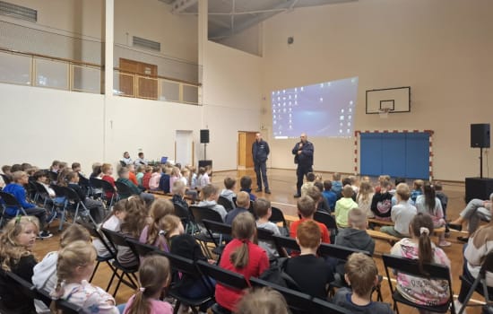 Dnia 30 września br. w naszej szkole odbyło się spotkanie uczniów klas I–III z funkcjonariuszami Komisariatu Policji w Niemcach. Pogadankę na temat bezpieczeństwa w ruchu drogowym, a także zasad bezpiecznego zachowania w domu i w szkole przeprowadzili: dzielnicowy st. Asp. Marek Bokła oraz sierż. sztab. Karol Siwek.