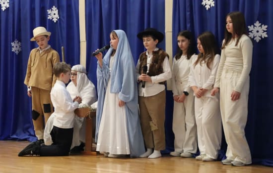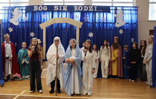 W dn.19.12.2025 nasza szkoła stała się ponownie Betlejem, w którym na nowo rodzi się Bóg. Tegoroczne jasełka "Przebaczenie" przygotowała klasa 5a pod opieką Pań: Joanny Trockiej -wychowawczyni klasy, Teresy Kozieł-katechetki i Magdaleny Staweckiej - nauczycielki muzyki. Honorowymi gośćmi wydarzenia byli: Ks. Kanonik Robert Brzozowski - proboszcz parafii Dys, Pan Dyrektor Mirosław Studniewski i przewodniczący Rady Rodziców Pan Andrzej Jóźwik. Goście przekazali uczniom przepiękne życzenia świąteczne i zostali obdarowani stroikami świątecznymi.